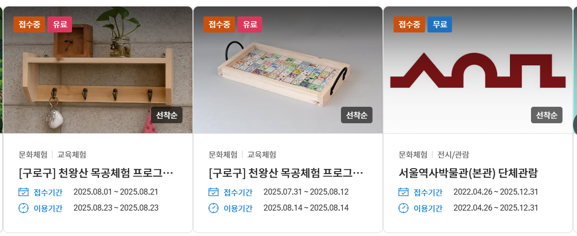 - 시설대관: 체육관, 강의실, 회의실 등 서울시 산하 공공시설 대관