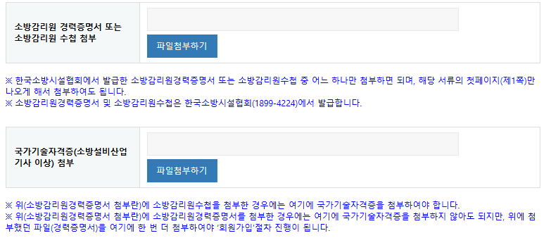 회원 가입 시 소방산업기사 이상의 국가기술자격증과 소방감리원 수첩 소지 여부를 확인하며, 회원 전용 자료실과 교육 정보, 구인구직 서비스 등을 이용할 수 있습니다. 홈페이지 내 회원가입과 로그인 절차는 간편하며, 각종 서식과 신청서 다운로드도 지원됩니다.